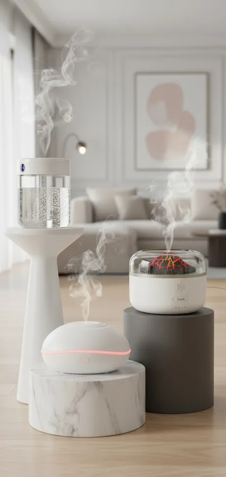 During the heating season — when smog appears in many areas and, due to the cold, we open windows less frequently — ultrasonic diffusers help humidify and gently purify the air. As a result, interiors become more comfortable, and the entire arrangement — from lighting to fragrance — creates a harmonious and cozy atmosphere.